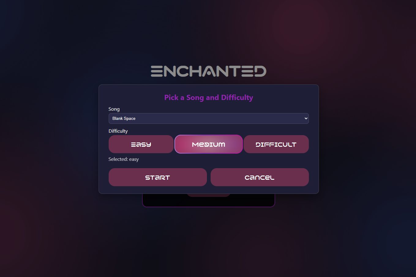 2. Difficulty Level – Choose between easy, medium, or hard (controls the lyric gaps and N-gram challenge).